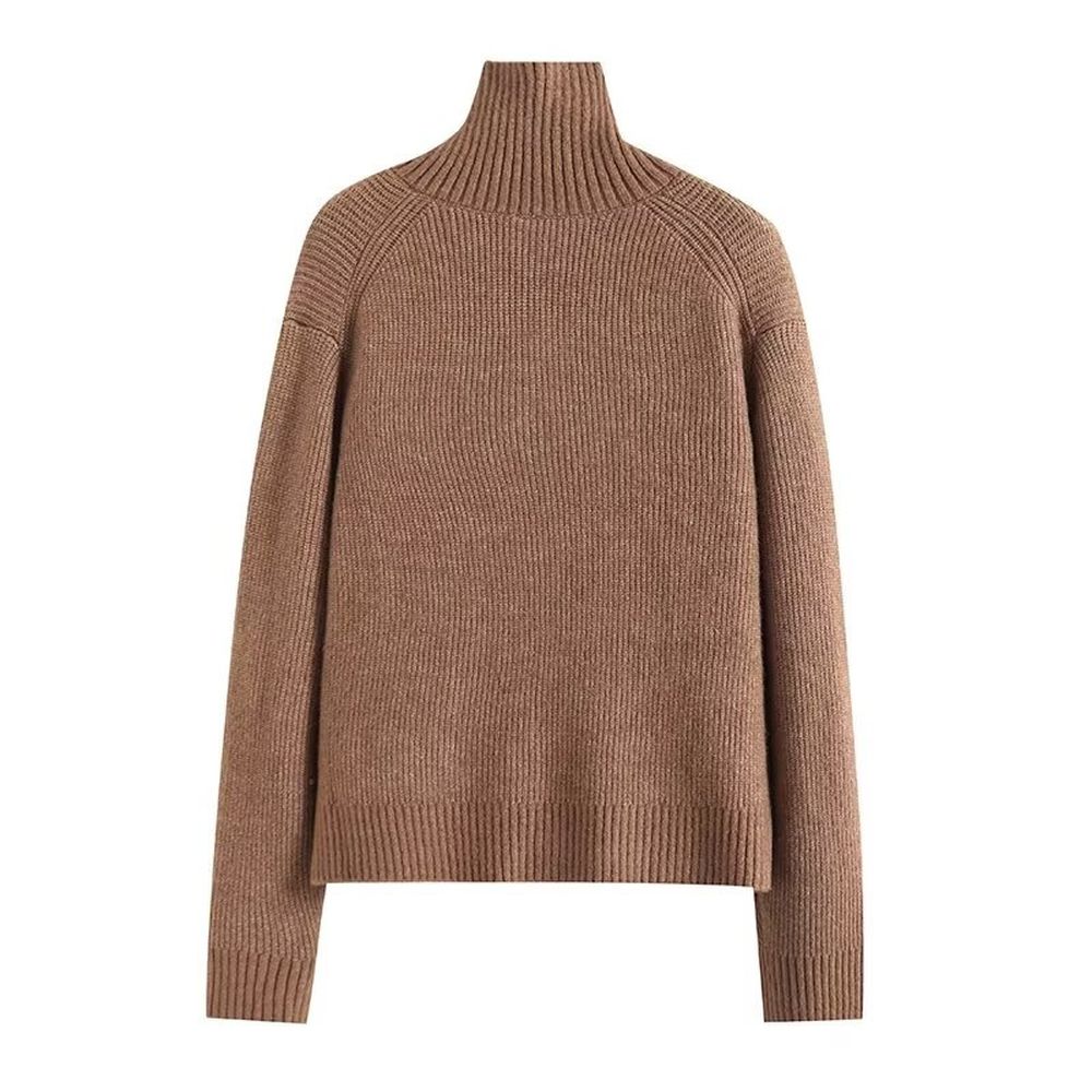 Brown Sweater Knitted Cardigan Long Sleeve Soft Jacket Top for Women