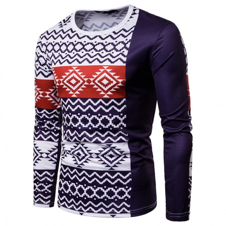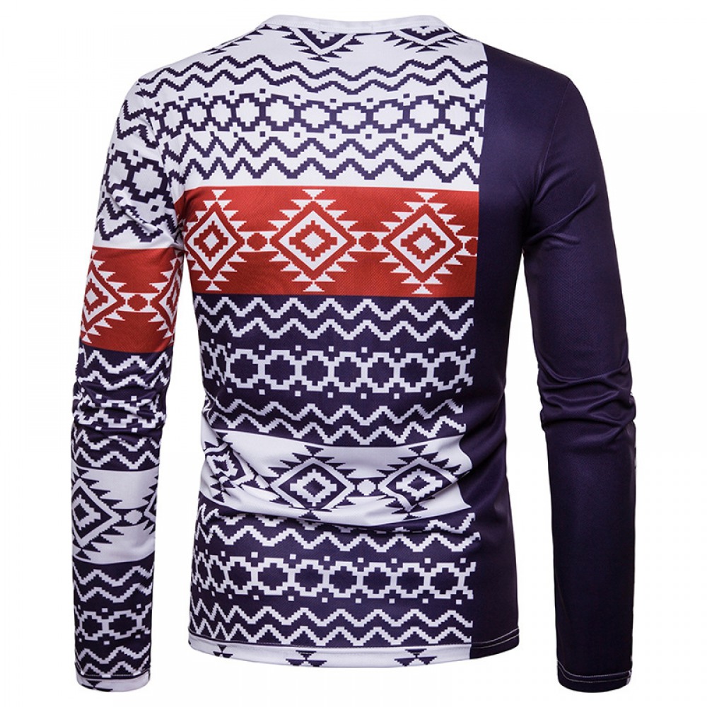Men's Ethnic Style Floral 3D Printing Round Neck Long Sleeve T-Shirt