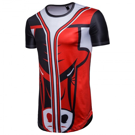 New Large Size Hip-Hop Men's Printed Long Short-Sleeved T-Shirt