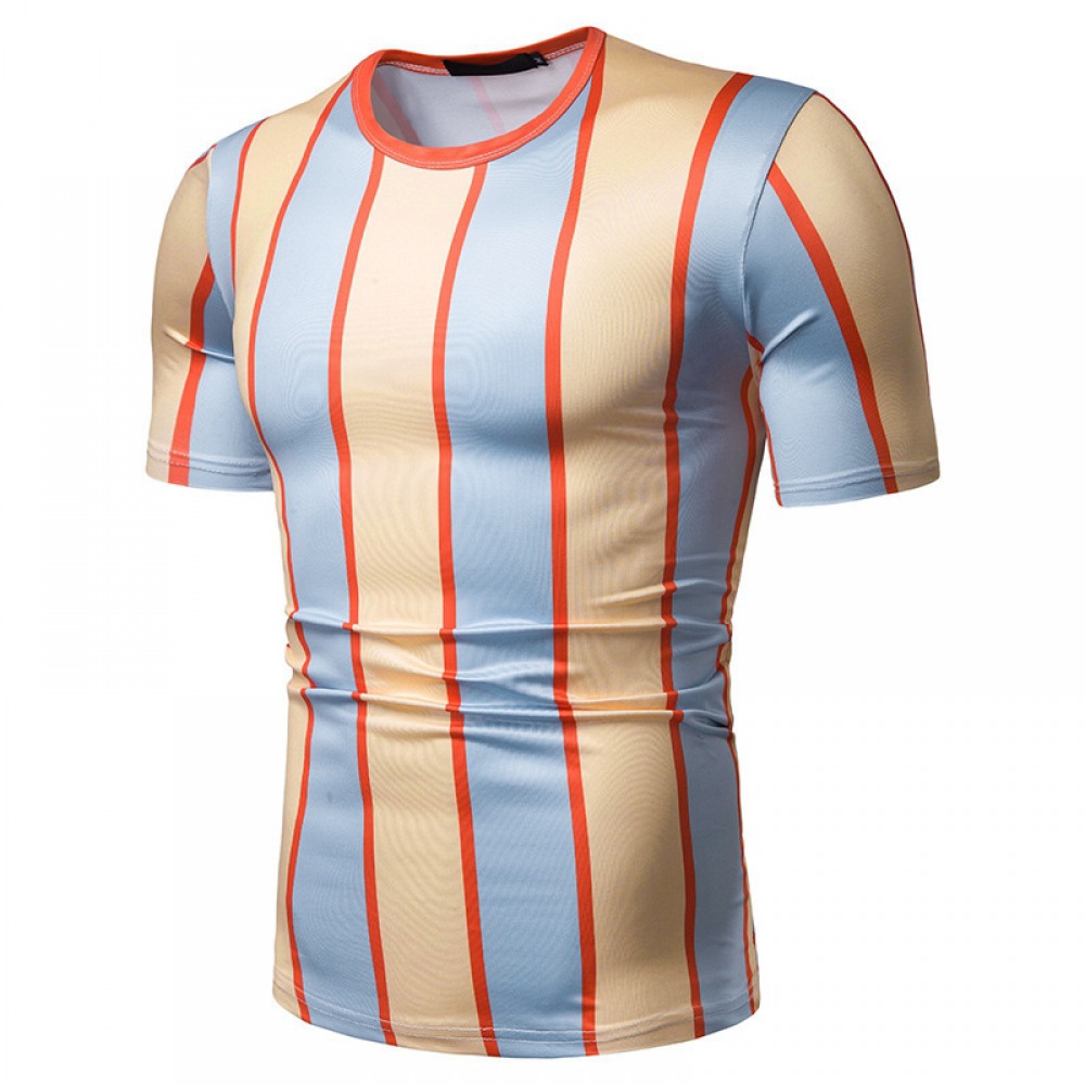 New Summer Men's Short-Sleeved T-Shirt Men's Contrast Striped Slim Casual T-Shirt