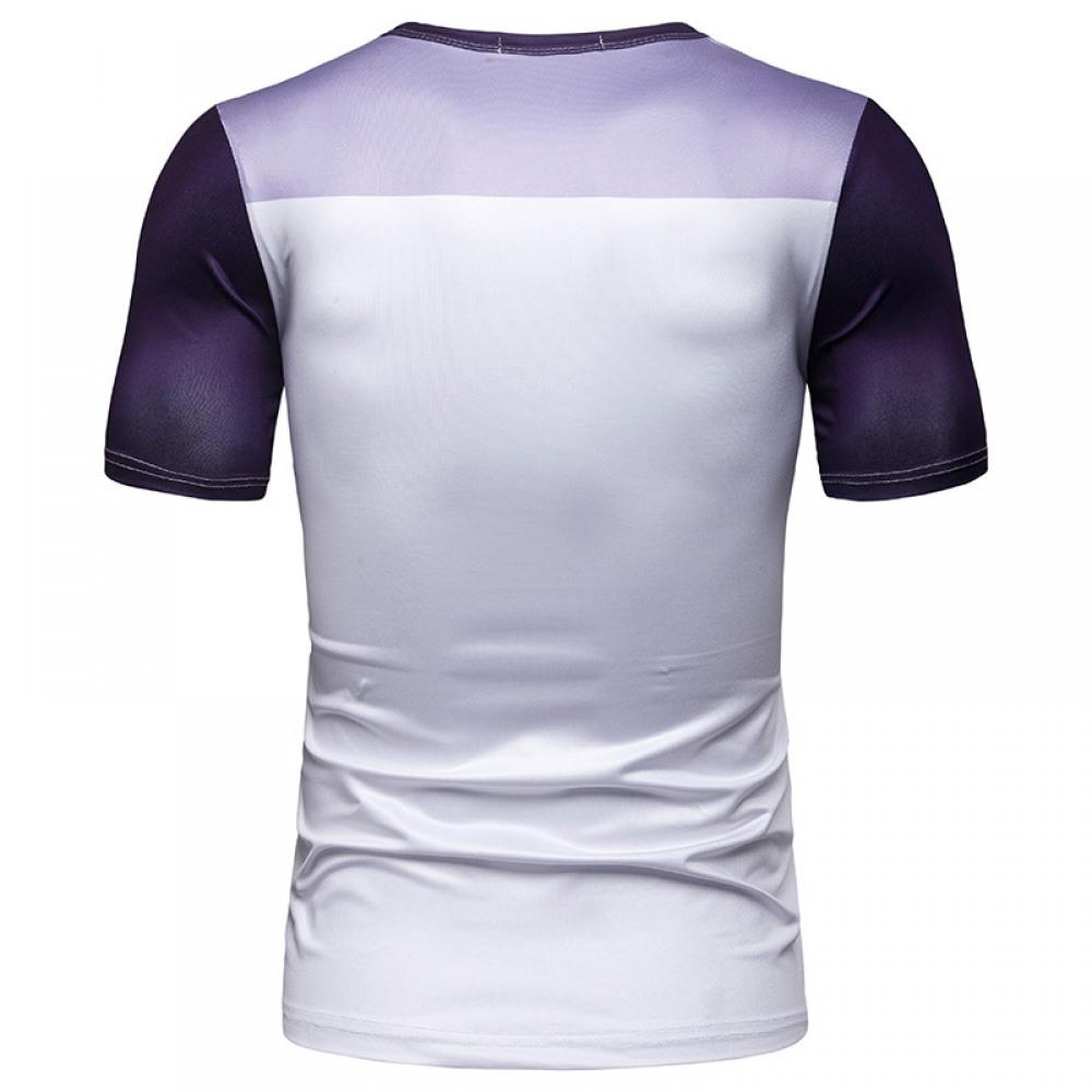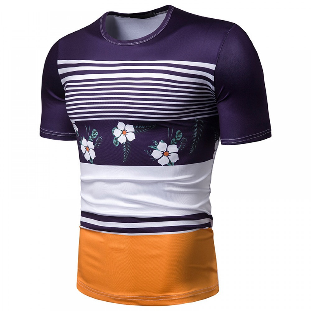 Summer Men's Short-Sleeved T-Shirt Mens Contrast Striped Slim Casual T-Shirt