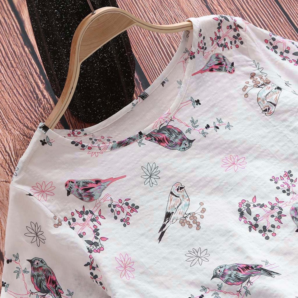 Retro Cotton and Linen Printed Short-Sleeved Casual Loose T-Shirt Women