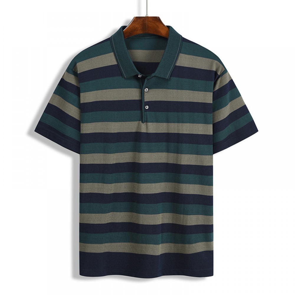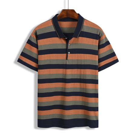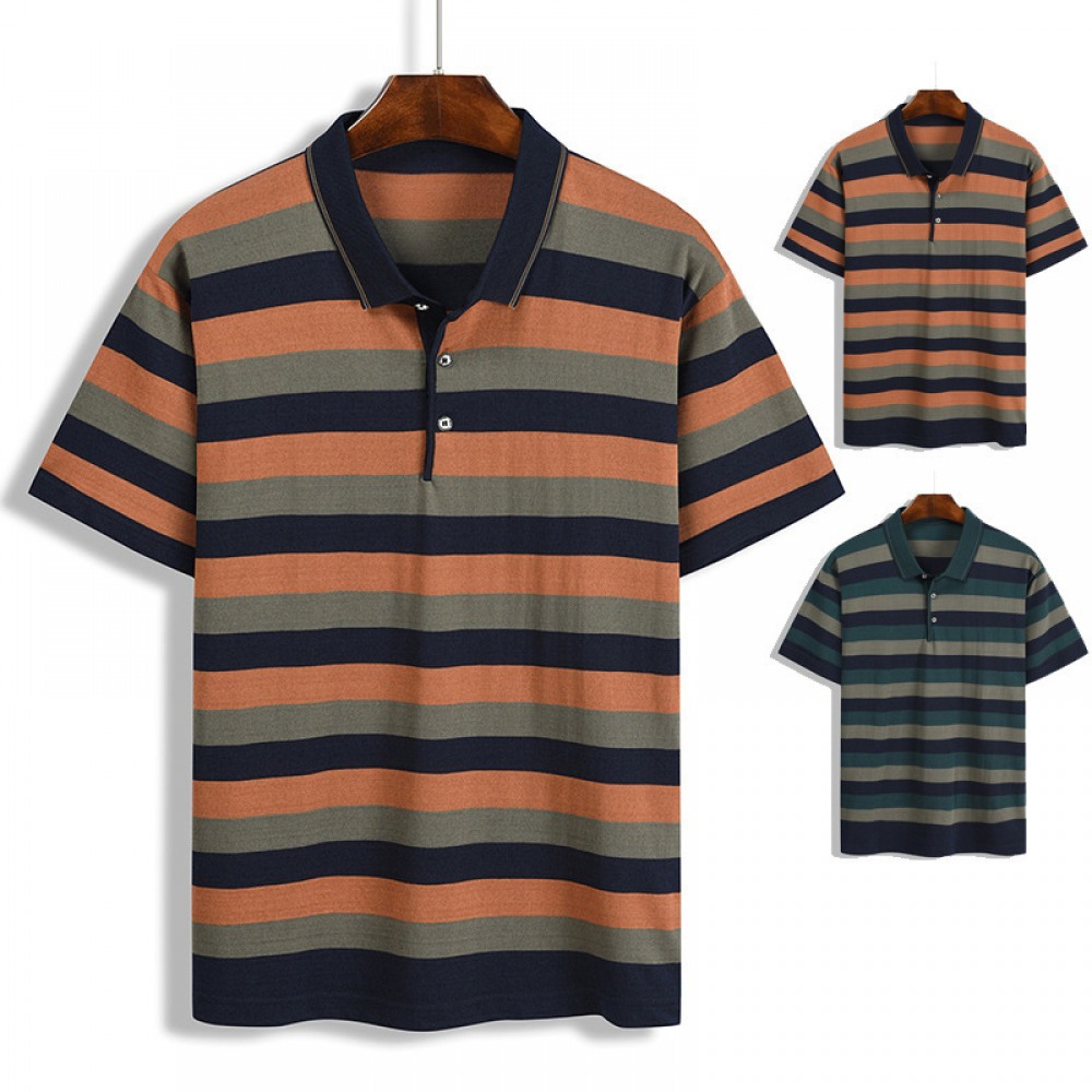 Summer New Men's Casual Fashion T-Shirt Striped Color Matching Pocket Mens T-Shirt Short Sleeve